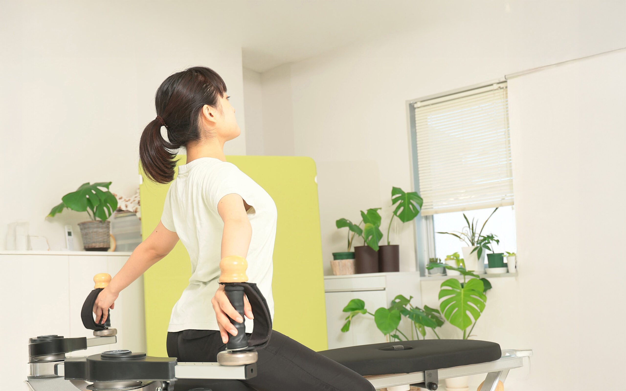 専用の木製マシンを使って、身体の深層にアプローチしながら柔軟性・筋力・可動域を高めていきます。完全プライベートのパーソナルトレーニングです。