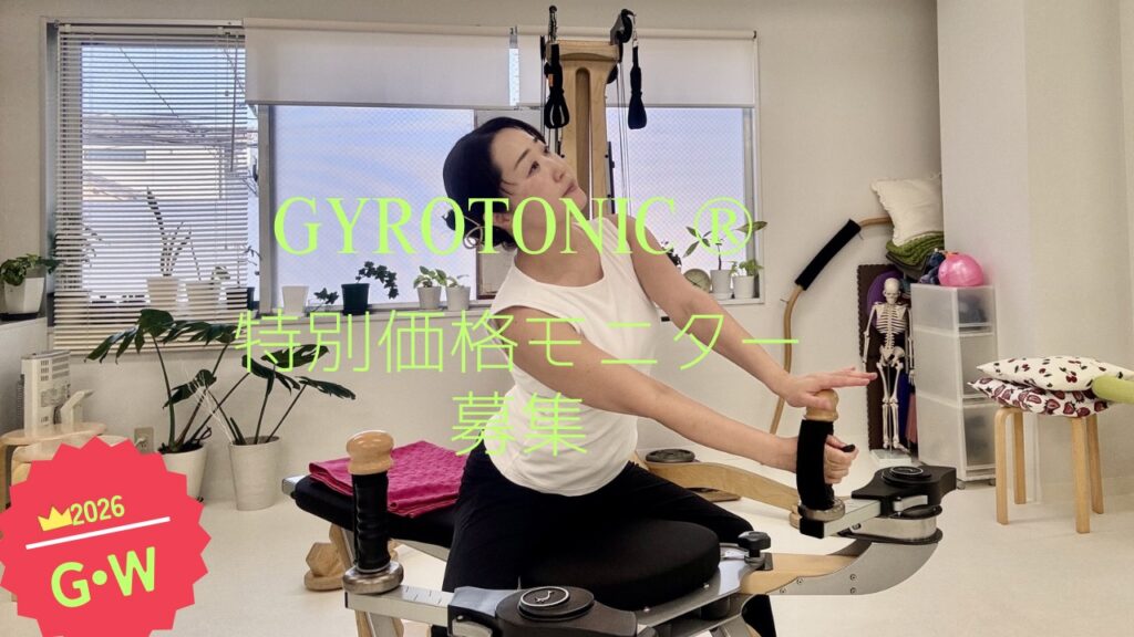 2026年ゴールデンウイーク期間中、ジャイロトニック®のセッションを受けた感想を教えていただける方を募集しています。当スタジオのジャイロトニック®プライベートセッションを受けたことがない方に限ります。 モニター募集日時 4月29日 9:30-/10:30-4... -