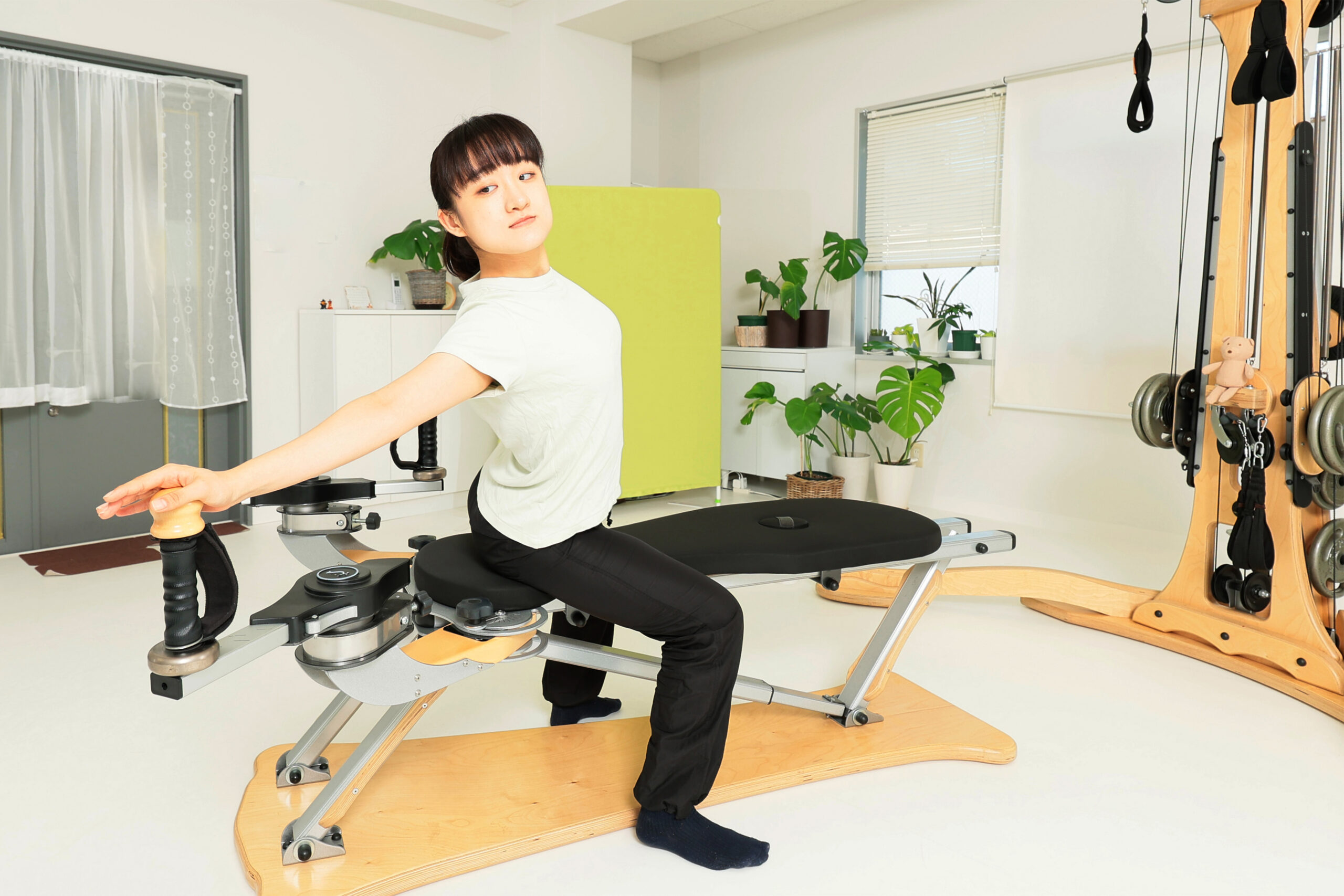 呼吸とともにハンドルやケーブルを動かすことで、体の深部がほぐれ、内側から整っていくような感覚が得られます。